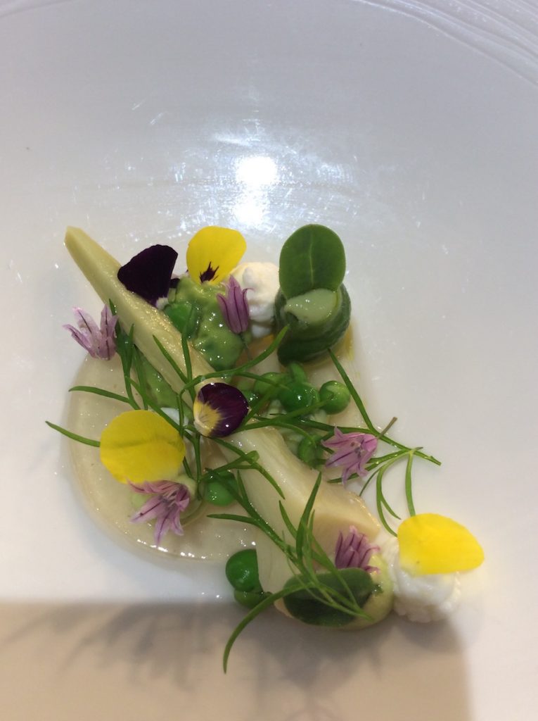 Pea, Globe Artichoke & Micro Leaves. Wine: Lubéron White “Papillon”. Maison Williams Chase, France, 2014