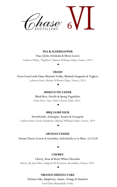 Trout – cured with Chase Rhubarb Vodka, Rhubarb Gazpacho & Yoghurt. Wine: Lubéron Rosé , Maison Williams Chase, France 2015