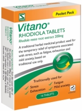 Rhodiola rosea can be found in Vitano® Rhodiola tablets, a traditional herbal medicine used for the temporary relief of symptoms associated with stress, such as fatigue, exhaustion and mild anxiety, exclusively based upon long-standing use as a traditional remedy.